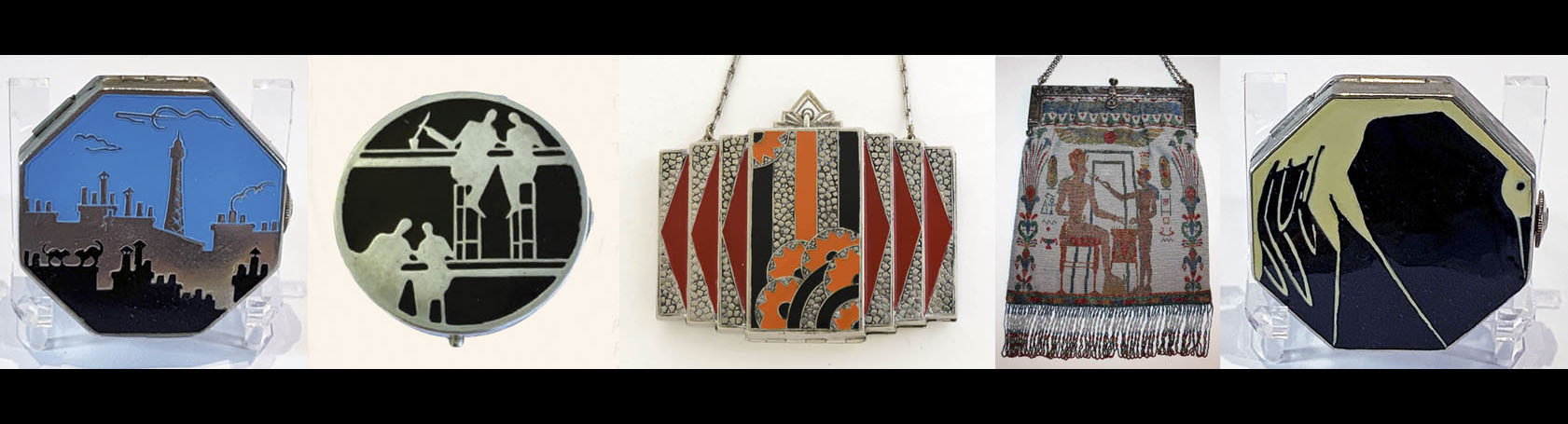 The Art Deco Society of Washington and the International Perfume Bottle Association will be exploring the timeless beauty and design in ladies’ luxury accessories. This presentation examines ladies’ luxury accessories produced during the mid to late 1920’s and early 1930’s. It examines the characteristics of the Art Deco style and discusses its impact on luxury accessories for women. The presentation includes examples of Art Deco compacts, purses, and vanity items from that era, analyses their design and functionality, reviews makeup trends associated with Art Deco, and covers aspects related to collecting and preserving these vanity items today.