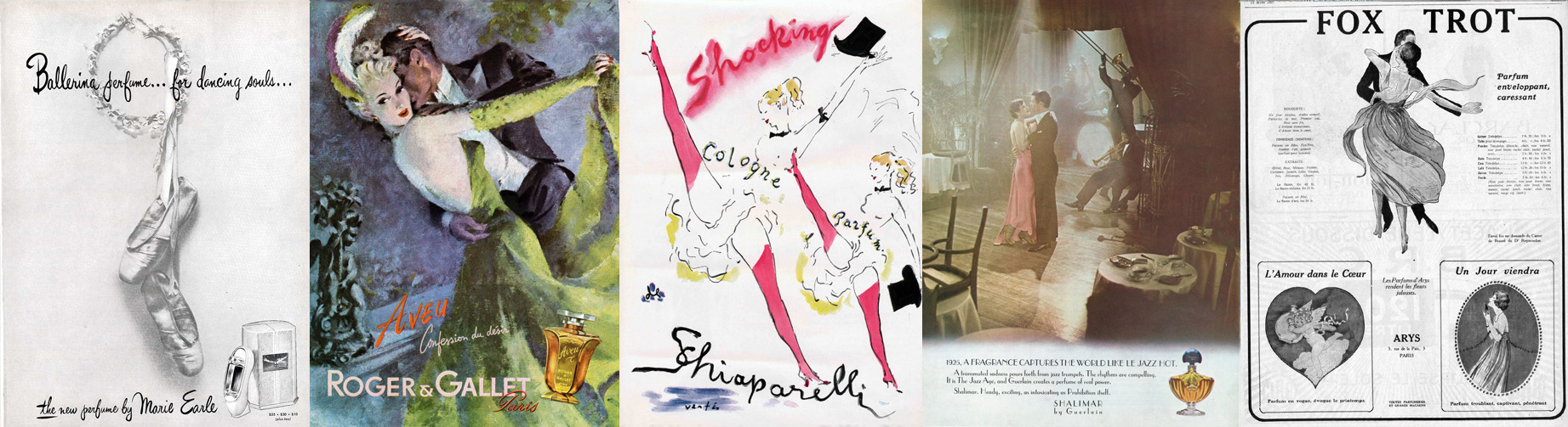 Unfortunately with the pandemic, we were not able to go to parties and dance in the New Year for 2021 or 2022, although a few may have ventured out to dance in the New Year for 2023. We can feed our dance fantasies using a surprising number of perfume and vanity items that feature all types of dancing including: ballet, can-can, fandango, fox trot, samba, swing, tap, and waltz, as well as ethnic dances and dancing nymphs.