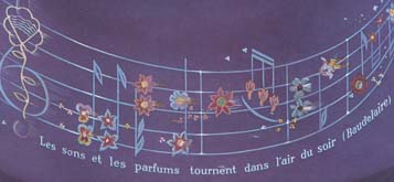 Passion can be inspired by both music and perfume. Many vanity items, perfume bottles, presentations, and advertisements play upon a musical theme. Instruments depicted include pianos, violins, cellos, harps, drums, cymbals, guitar, trumpet, accordion, mandolin, and more …